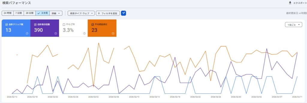 ブログ開始から現在までの検索パフォーマンスです。